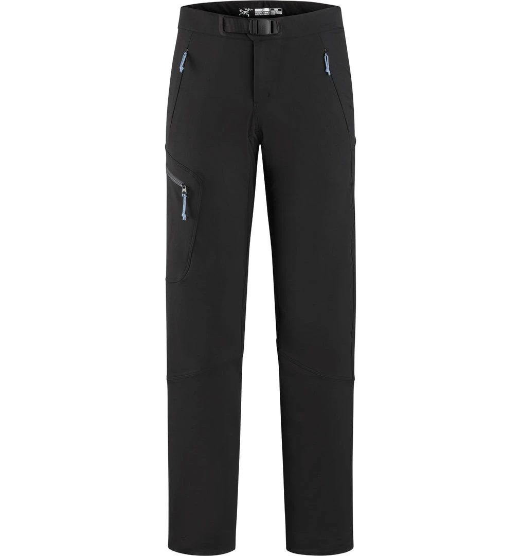 A premium midweight stretch woven softshell pant from Arc’teryx made with durable nylon on the outside, and a comfortable, warmer, moisture wicking polyester fiber woven on the inside. Perfect for all of your cooler weather alpine hiking, climbing, and mountaineering when a lightweight softshell pant just isn’t quite warm enough. Newly updated with an improved cuff for mountaineering boots and a retractable lace hook.