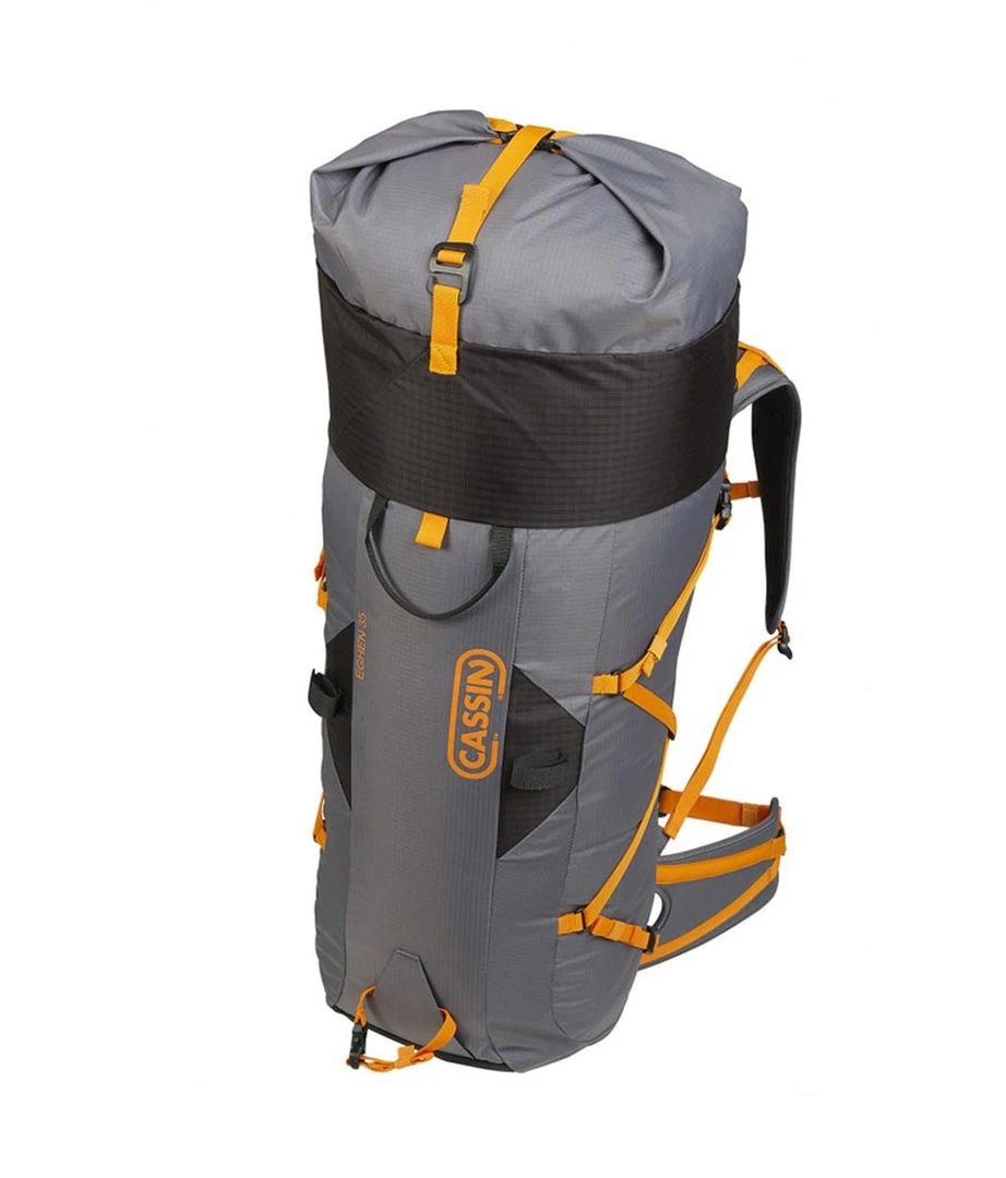 Building on the success of the Eghen 22, the Eghen 35 brings high capacity to big, technical alpine routes. The capacity is variable due to the unique double closure system with a roll-top for the main closure and a drawstring with cinch buckle for a secondary security closure. The frameless back gets rigidity from 2mm of heat-sealed foam combined with a 4mm removable soft pad that doubles as an emergency bivy pad.