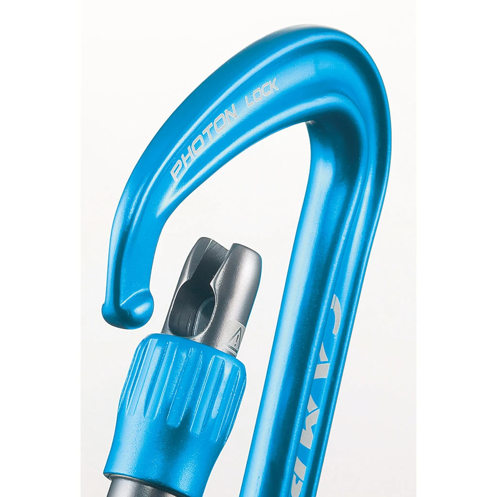 An Ultralight Locking Carabiner from Camp that will serve many of your lightweight multi-pitch and high alpine needs.Ā The lightest locker Camp makes, and it is still a full-size standard size D-shaped carabiner.Ā Keylock style SphereLock gate closure helps prevent snagging and has a slim nose profile. Use these carabiners in conjunction with personal anchors, on the first piece of gear when leading a pitch, when building belay stations on multi-pitch alpine climbs, for crevasse rescue systems, and for many other uses.Ā Large enough to accommodate a clove hitch.Ā If you do a lot of different types of climbing, then you quickly learn how many different purposes that these will serve, and how many ways a few of these in your kit will help to protect you.Ā The “keylock” style gate closure has become one of the most popular industry standard designs because it prevents the carabiner from snagging when clipping on and off of slings, gear, ropes, and harnesses.