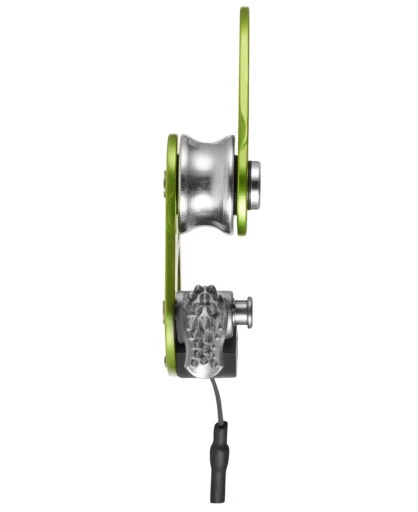 An ultralight progress capture pulley from Edelrid. The cam helps grip icy or muddy ropes, and can also be locked open to use this like a regular pulley. Designed for crevasse rescue, hauling loads, and as an emergency ascender. The lightest weight device of this style available.