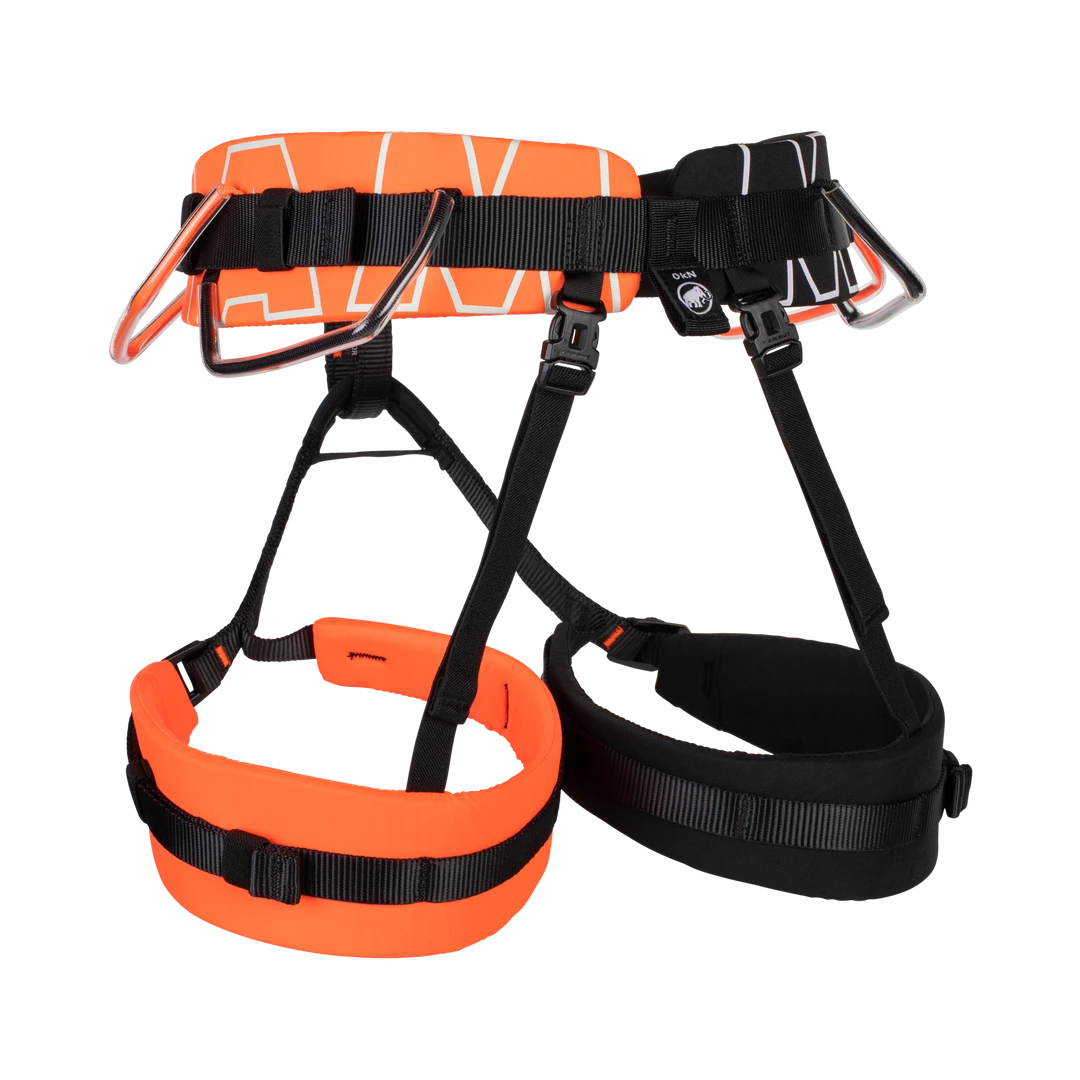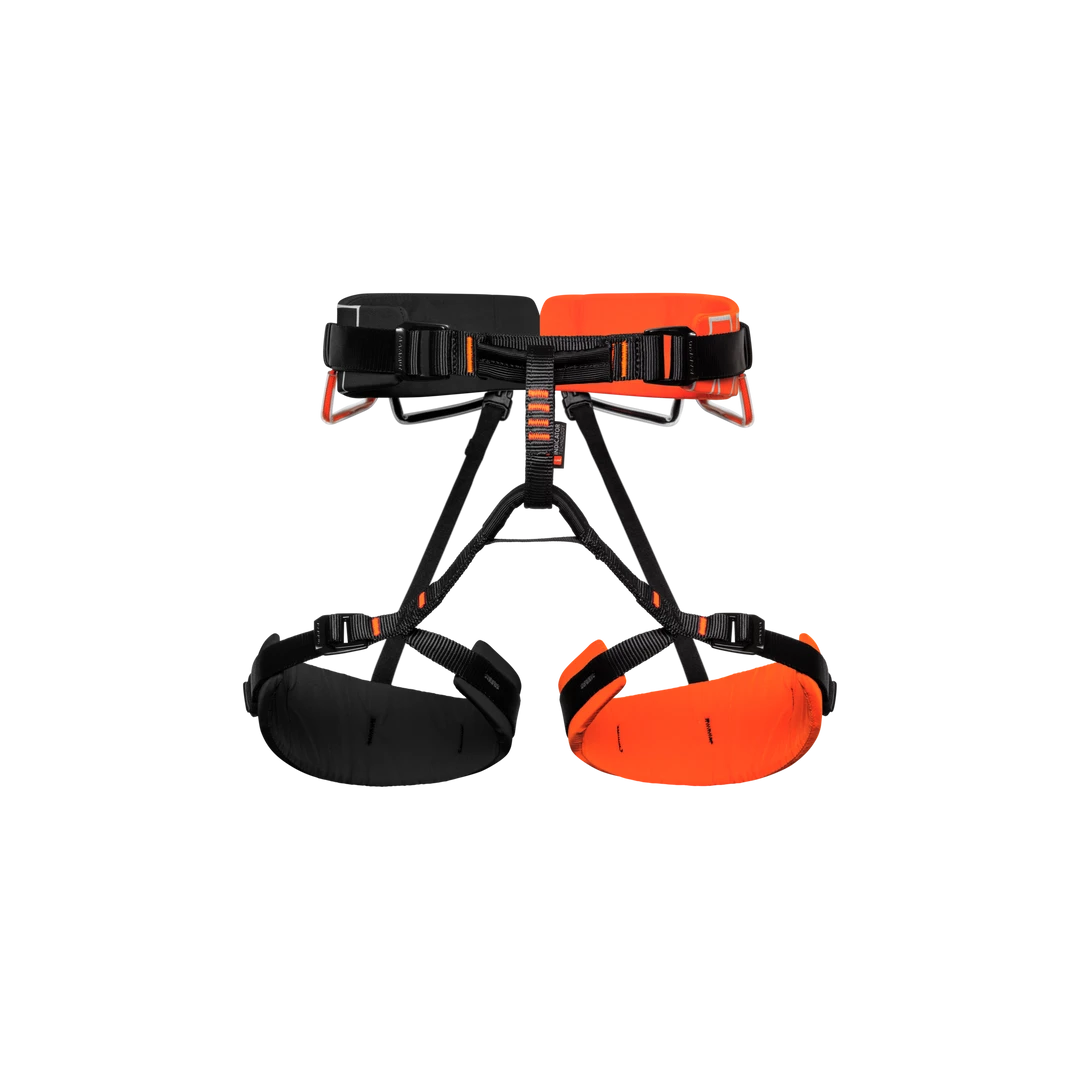This Mammut 4 Slide Harness is an incredible value for beginning to expert climbers alike. Four Slide-Bloc buckles allow this harness to be adjusted comfortably to a wide variety of body sizes and different amounts of clothing from summer to winter climbing. Having 2 adjustment buckles at the hips allows the climber to always keep the harness and gear loops perfectly centered around your waist for an ideal fit. This 4-buckle system creates the best possible fit for the best possible comfort through enabling even body weight distribution between your legs and waist. The generous padding makes this harness extremely comfortable for a variety of types of climbing uses. 4 large downturned gear loops allow for optimal gear organization and are capable of carrying a large amount of gear if needed. 2 quick-release drop-seat buckles in the rear make for quick and easy access for nature calls while remaining tied in for safety. Red material woven into the tie-in point serves as an indicator to alert the user to damage.