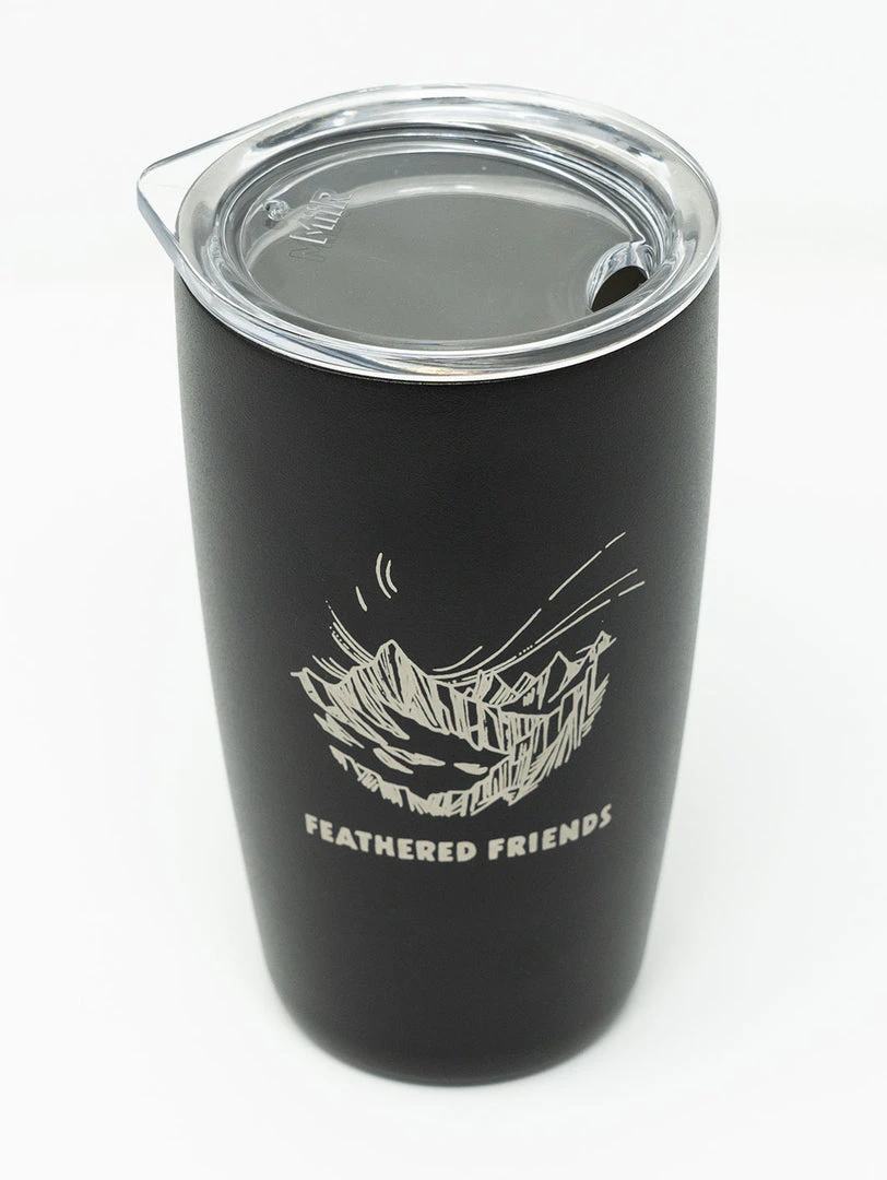 On the go? The Feathered Friends Insulated Tumbler by MiiR keeps your drinks nice and hot… or cold… and doesn’t sweat.