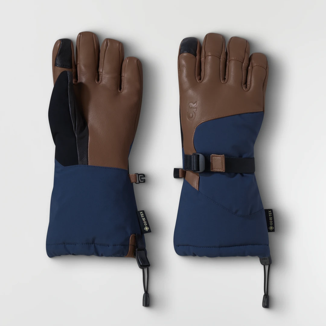 Another feature-packed great fitting pair of all-around fixed insulation gloves from Outdoor Research! These gloves have slightly more insulation in the back of the hand than in the palm to help balance dexterity with warmth, a GORE-TEX® insert for waterproof/breathable protection, a water resistant goat leather palm for durability, and a unique stretchy Arcade® elastic webbing wrist cinch for a customized secure fit.