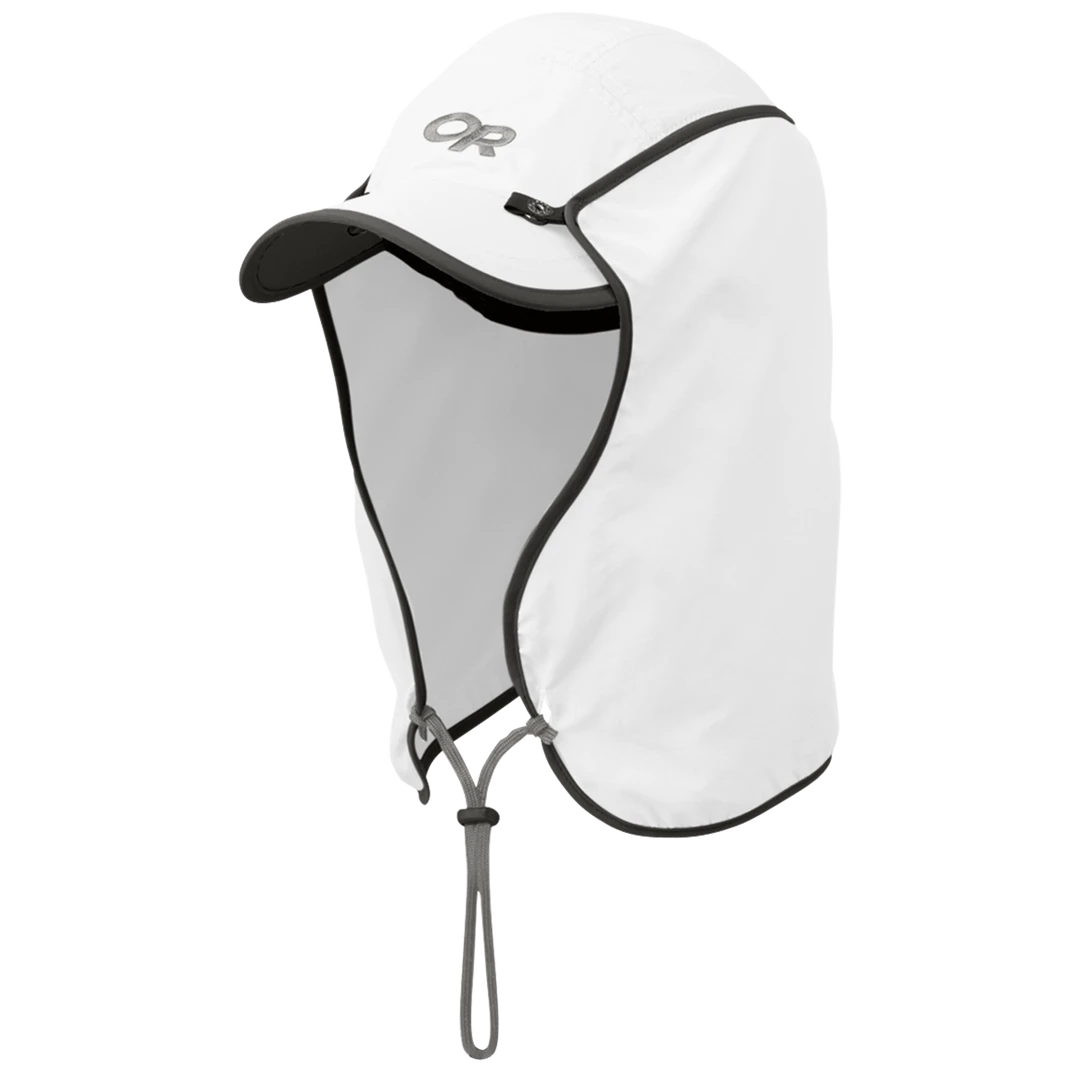 One of our best selling snow and glacier travel hats. Also great for hiking, ski touring, mountaineering, fishing, and boating. Extremely versatile for hot sunny conditions. Removable UPF 50+ sun cape easily snaps off and on for extra sun protection for your ears and neck when needed. Dark fabric under the brim reduces glare and improves vision in bright sun. Mesh side panels increase breathability and comfort. A removable chin cord helps secure the sun cape and hat in windy conditions, while a hook/loop back also provides adjustability. Lightweight and very packable.